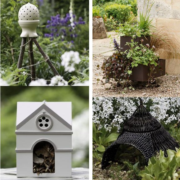 Perhaps one of the stores I miss the most from my London days is Marks and Spencer. (the grocery store and the pre-made meals are the best!). M&S is has some fun products that I am coveting….and while they all carry a sophisticated style, Designer Paul Hervey-Brooks is also conscious of little friends in the garden who also need special homes and care. There are insect houses, hedgehog houses and cane toppers that also do double duty as a bug home — and the tiered container is great for balcony gardeners.