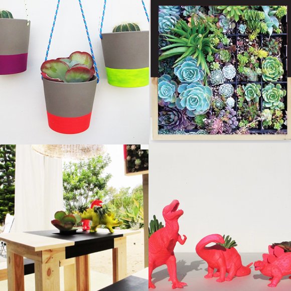 And finally — if you like things outside to be really shout out loud vibrant — check out the collection at Shelterblack. There are florescent dinosaur planters, chunky wood tables and squares for planting succulent gardens.
