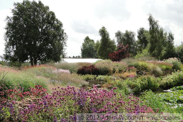 So when Adam said I could publish some of his awesome pictures from his recent tour of gardens, (excitedly) I was immediately drawn to these images of the Pensthorpe Nature Reserve in Norfolk. Piet Oudolf designed the planting (can you tell? it is signature Oudolf style) and while I am constantly trying to identify every plant in every image….I also can clearly imagine this scene in the winter…with a touch of frost and how that bird (and her friends) must enjoy this landscape….and how beautiful they must look within it.