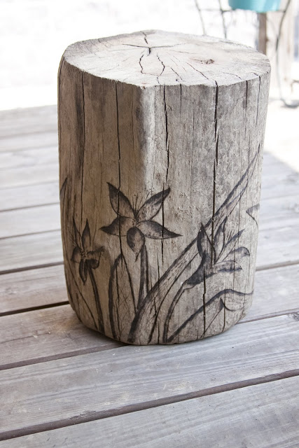 Wood burning, used creatively to make patterns and gorgeous designs in unexpected places seems quite trendy lately don’t you think?