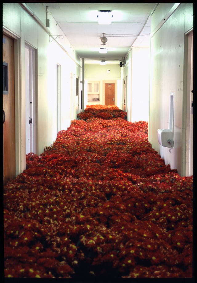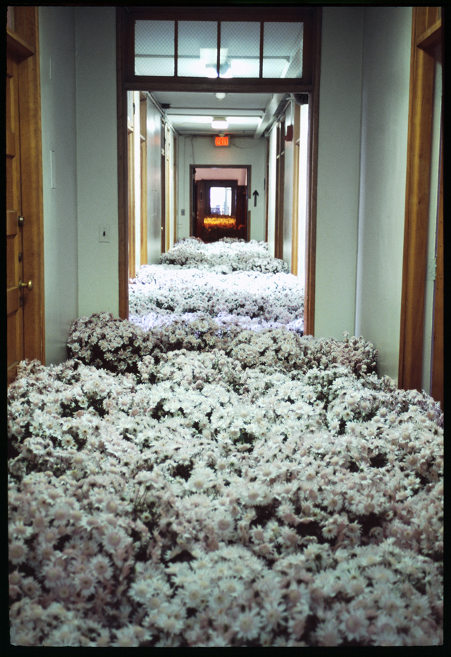Anna was struck, after an initial tour of the facility, with the lack of life and color in the building and the installation was created to respectfully infuse a new hopefulness. The flowers that were brought in would fill almost every square foot of the MMHC including corridors, stairwells, offices and even a swimming pool. The public was invited for a limited 4-day viewing where they could reflect on the 90+ year history of the building and hopefully enjoy the optimism of re-birth.