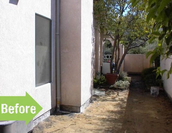 This next transformation is probably one of my all-time favorites, partly because I love side yards but mostly because it’s just so gorgeous. Landscape Designer Shirley Bovshow came up with an amazing side yard makeover a few years ago for a client living in Los Angeles. What used to be a narrow tunnel that wasn’t much more than a dusty walkway to the other side of the house quickly became a lovely oasis filled with romantic charm.