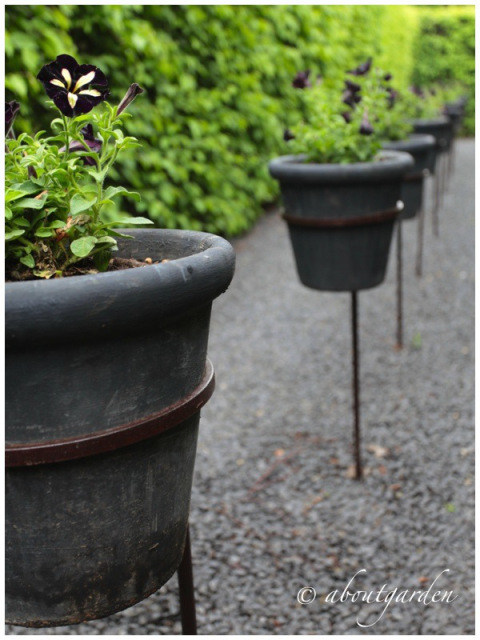 As well as little black pots with pretty petunias held tall in metal stands. Where can I buy those?