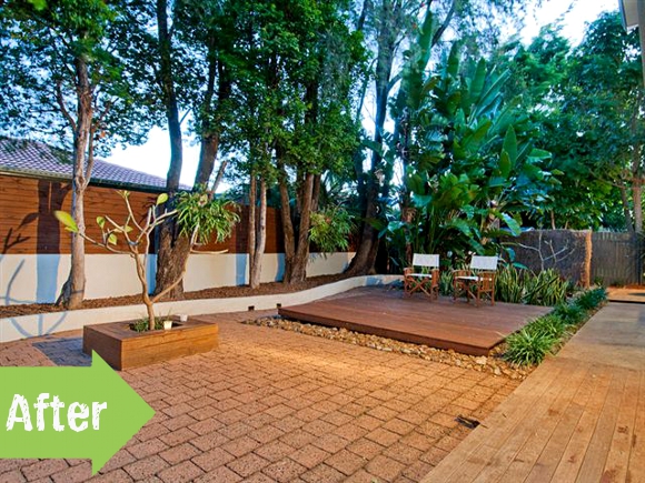 After a bit of time and effort, she had herself a backyard with a sweet new deck and patio. I love how welcoming it is compared to the crunchy dead grass! I’d love to hang out here…it looks like a great space to get together with friends and chat over dinner and cocktails, doesn’t it?