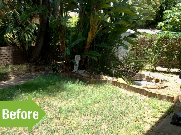 I’m currently taking a break from a landscaping project that isn’t going as planned [surprise!] so I thought maybe I’d find a little encouragement by looking through some Before & After photos. Seems to work like a charm every time, especially when the makeover is as great as this one is! The homeowner who writes the blog Mini Mocha was having a heck of a time growing grass in her shade-heavy yard, and after trying grass specifically grown for shady areas to no avail, she decided to move onto a bigger and better idea.