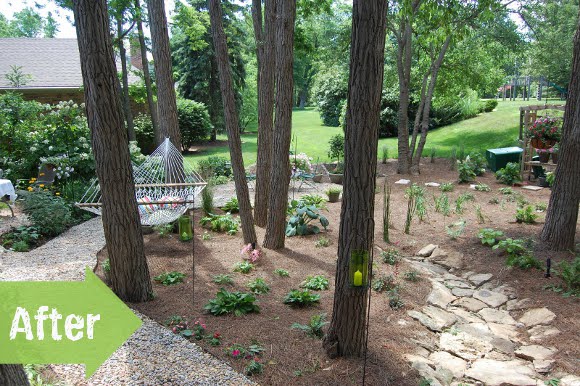 As you can see, there was a lot of work that went into this project, and judging by the outcome it was well worth the time and effort! This shady retreat is pretty much the most perfect hammock area I can possibly think of. Being up on a hill gives it a lot of dimension, but really, it’s the plants and paths and towering trees that I’m loving. The Hesitant Gardener is worth a quick visit if you have a minute- she posted a few really nice before and after projects that have me wishing that it was only spring. October is great and all, but here in Wisconsin we’re pretty much into winter coat season. Maybe a few more days of outdoor projects…but not enough to do anything extravagant. -erin