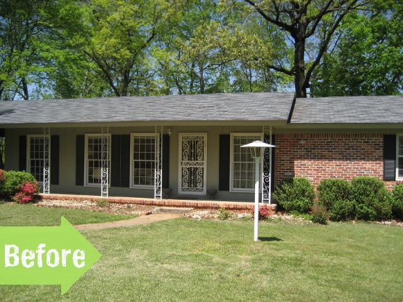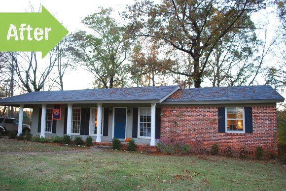 Wes & Jennifer purchased their house a couple years before they were able to start on the first leg of their updates. As you can see, this photo was taken late-fall, so it’s hard to tell what those plants the the right look like- but what I’m enjoying most about this is the new columns they added to get rid of those curlicue iron posts. They also painted the front door a vibrant blue and replaced the rock with mulch and new plants, and ditched the old post light as well . Nice job, Wes & Jennifer! I like that this makeover is more to the scale that I’m personally able to accomplish. While I have all these grand ideas and most of my visions have millions of stones, plants and structures, the reality is that those types of projects just aren’t going to happen for me now. So, this kind of project made me smile. 🙂 -erin