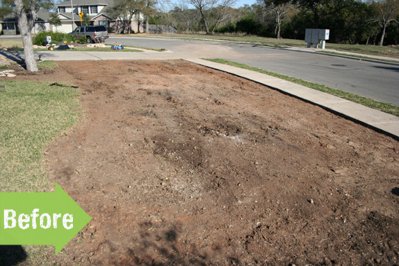 I’ve been thinking about adding a few plants & stones to the corner of my yard, so finding this makeover was great timing. Scott mostly writes about technology & music on his blog, but google took me to this post from a few years back and I thought it would be a good fit for this week’s before & after. As you can see, the grass had already been scraped away for the “Before” photo, which left behind a perfect foundation to work with.
