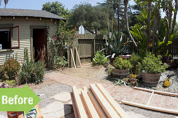 I found this makeover the other morning over at a website called Wood & Bones. The homeowners were seeking more shade for their sunny backyard but knew that it could take years if they planted a tree and relied on its future canopy. So instead of waiting, Bill decided to build a new pergola as a corridor for their new pathway.
