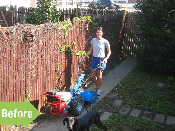 The couple’s backyard pointed outward towards a CVS pharmacy, which practically stared them down every time they went outside. Annoyed with the constant sight of a commercial building, they decided to add height with a new privacy fence. The concrete path was ripped out and replaced by a variety of materials and new beds were planted. What a huge transformation! I really love the broken concrete pieces they used in the corner of the joining paths- it adds just the right amount of personality and dimension without looking hokey. Awesome job, Liza! -erin