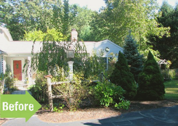 Just a quick write up this week, but I think you’ll love the photos- I found this front yard update over at a blog called Farmhouse Life. The homeowners wanted to get rid of the overgrown cherry tree which was becoming a maintenance issue and also find a way to create a screen the view between their porch and driveway. Here is what they came up with…