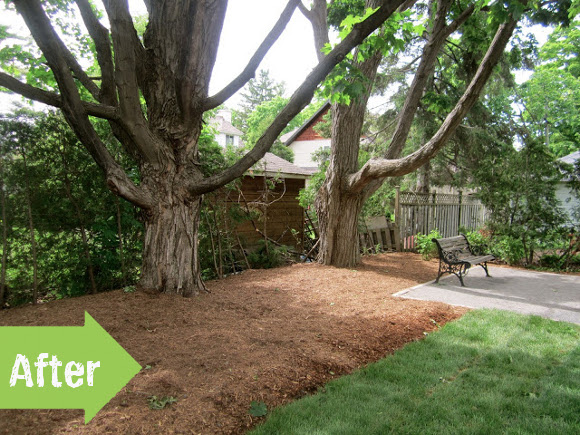 But when the sun finally shines and the mosquitoes die off, there’s a glimmer of hope for the much-neglected corner in the backyard. I’m not sure if that’s quite how the story goes for this particular before & after, but I’m sure it’s somewhat similar.